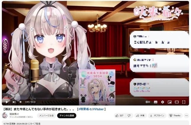 「元アイドル」をうたう女性VTuber・咲来希々(さくらのの)さんが2024年8月20日のライブ配信で、自宅をめぐるトラブルが立て続けに起きているとし、その顛末を明かした。