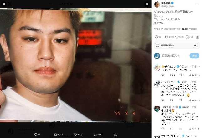 お笑い芸人・なだぎ武さんが2024年9月11日、お笑い芸人・ハリウッドザコシショウさんが21歳当時の写真をXで公開し、「イケメン」などと反響を呼んでいる。