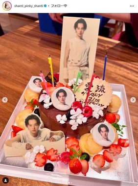 誕生日ケーキは果物やロウソクだけでなく、愛流さんが舞台出演した際のビジュアルを用いたプレートが5枚ほど飾られている様子だ。投稿文では「特製のお誕生日ケーキ」を洋菓子店に作ってもらったと明かし、下記のようにも伝えた。