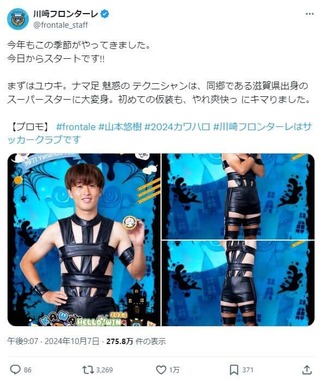 フロンターレ公式Xは、毎年10月に開催しているハロウィン企画「KAWAハロー! ウィンPARTY」に合わせ、選手らのコスプレ写真を公開している。
