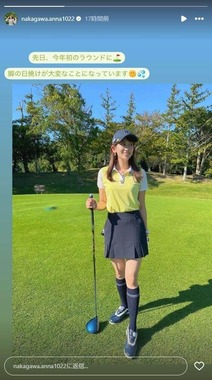 NHKの中川安奈アナウンサーが2024年10月15日にインスタグラムのストーリーズを更新し、ゴルフウェア姿を公開した。