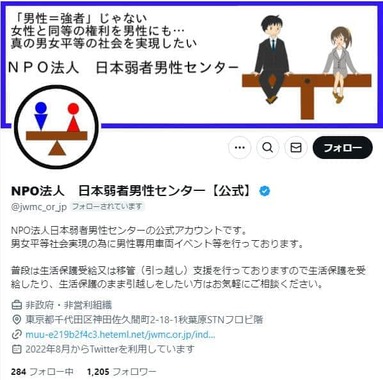 日本弱者男性センター公式X(@@jwmc_or_jp)より