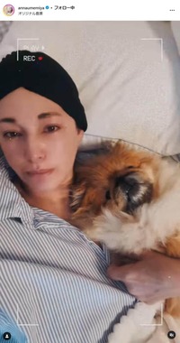 この日、梅宮さんは「今日は悲しくて泣いているモノをアップする事にしました」とし、愛犬とともにベッドに横たわり涙を流す様子を公開した。