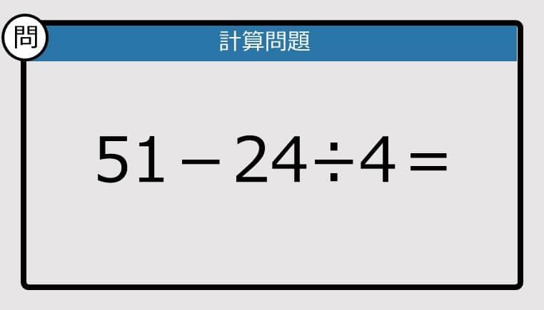 計算クイズExcel関数や電子決済などに頼り、日常的に計算をしなくなった昨今。小学生で習った四則演算の問題を、スラスラ解ける自信はありますか? 本日の問題はこちら。51−24÷4は?↓↓↓正解は......45その他の問題【解けなかったら恥ずかしい?】98−7×4−5は?《計算クイズ》【楽しく脳トレできる計算クイズ】28+84÷42+8は?【大人の英語テスト】elementary《この単語の意味は?》【大人の英語テスト】boring《この単語の意味は?》