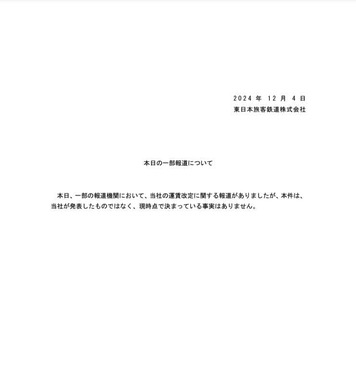 報道各社は、初乗り運賃を現在の150円から10円値上げるとの方針や、近々国土交通省に申請し26年春から新運賃で運用する予定であることなどを報じている。JR東日本は2024年12月4日、「当社が発表したものではなく、現時点で決まっている事実はありません」と発表している。
