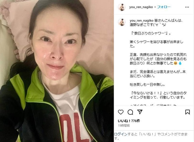 俳優・タレントの遠野なぎこさんが2024年12月5日、「お粥食べられましたっ!!」とインスタグラムで報告した。