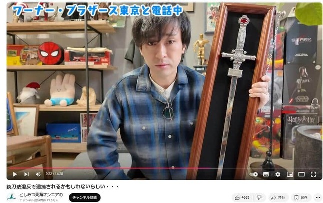 人気YouTuberグループ・東海オンエアのとしみつさんが2024年12月4日に個人チャンネルを更新し、「ワーナー ブラザース スタジオツアー東京」(東京都練馬区)で販売されていた映画「ハリー・ポッター」シリーズのグッズである「ゴドリック・グリフィンドールの剣」を警察に提出したことを報告した。