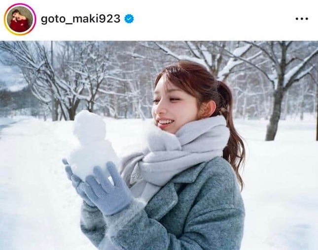 つづいて12月4日の投稿では「山形の雪山での撮影の一コマ」といい、のオフショットを投稿。インスタグラムに投稿された写真では、グレーのコートとマフラーを着用したワントーンコーデで登場。手袋をつけ、小さな雪だるまを持ち微笑んでいた。