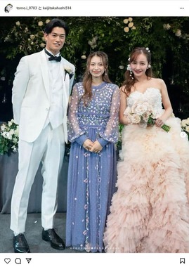AKB48の元メンバーでタレントの板野友美さんが、2024年12月17日にインスタグラムを更新。夫でプロ野球・ヤクルトスワローズの高橋奎二投手との「4年越しの披露宴を行いました」と報告し、ウェディングドレス姿を披露した。