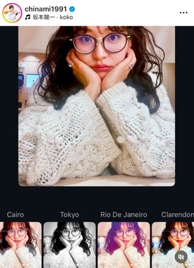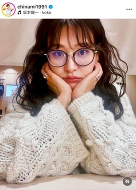 インスタグラムに投稿された写真では、パーマヘアで白いニットを着用。メガネをかけて頬杖をつき、カメラ目線を披露していた。