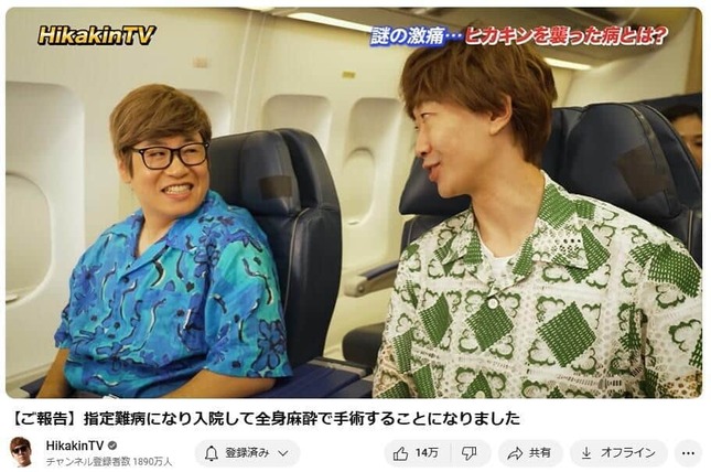 YouTuberのHIKAKIN(ヒカキン)さんが2025年1月19日、指定難病「好酸球性副鼻腔炎」だと診断され、全身麻酔で手術を受けていたことをYouTubeの動画で明かした。コメント欄では、「元気で本当に良かった」「本当に治ってよかった」などの声が相次いでいる。