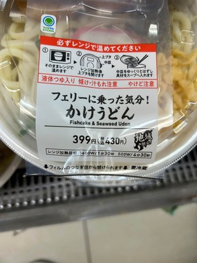 話題の発端はXユーザー・Maru(@maru_photo_787)さんが24日、レンジで温めて食べる「フェリーに乗った気分!かけうどん」という商品の写真を紹介したこと。パッケージには、鹿児島・宮崎のシルエットとともに「地域限定」と記されている。