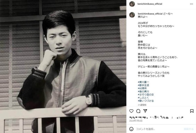 美川さんは24年7月4日の投稿でデビュー前の写真を公開していた。歌手生活60周年に際して過去写真を見返したといい、「昔の美川シリーズというのもやってみようかしら?笑」と伝えた。