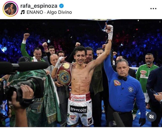 エスピノサは身長185センチと、フェザー級では長身で、プロ戦績は26勝(22KO)無敗。23年12月に、五輪で2度金メダルを獲得したロベイシ・ラミレス(キューバ、31)を判定で破り、WBO王座を獲得した。24年12月の再戦では、6回TKOで退け、勢いに乗る注目の世界王者だ。