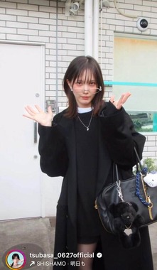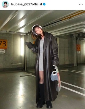 インスタグラムに投稿された動画では、メガネをかけて、黒のロングコートと黒のセーターを着用。超ミニ丈のパンツと、透け感のある黒タイツをあわせている。くるりと一回転して、ポーズをとってみせた。