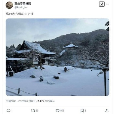 京都・東山で苔庭の名所としても知られる「高台寺 岡林院(こうりんいん)」が2025年2月9日、迷惑駐車の被害を受けていることをXで明かした。