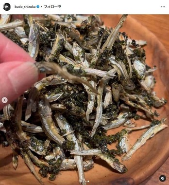 投稿文では、「打ち合わせデー 髪、静電気で大変ですよね オイル多めにしないと!」と伝えた。また、手作りした「煮干しのおつまみ」も紹介。青のりと黒いりごまを絡めた実物の写真を披露しつつ、「色々な味が楽しめるので最高です!」などと説明している。