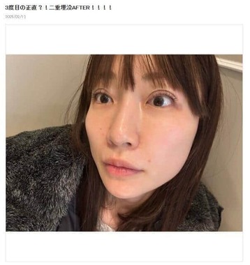 その後も、自撮りショットなどを投稿しながらダウンタイムの経過を報告。14日のブログでは、「埋没4日目、まだ腫れてます」などと明かしている。