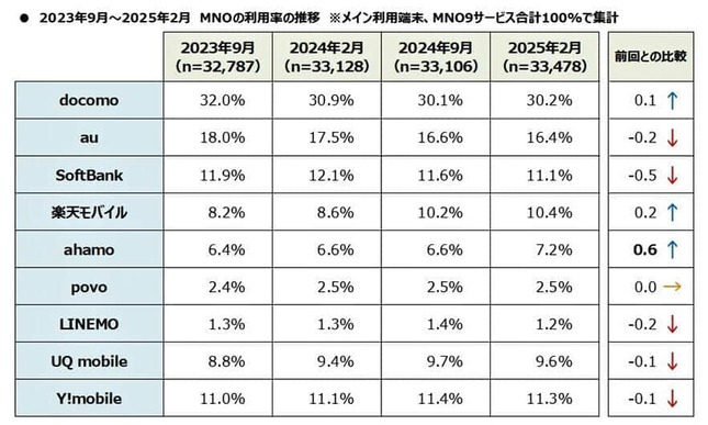 MMD研究所の調査(2025年2月1日~6日)は、スマホを所有している18歳~69歳の男女4万人を対象に予備調査が行われ、その後、各プランのユーザー(300人ずつ計2700人)に本調査が行われた。