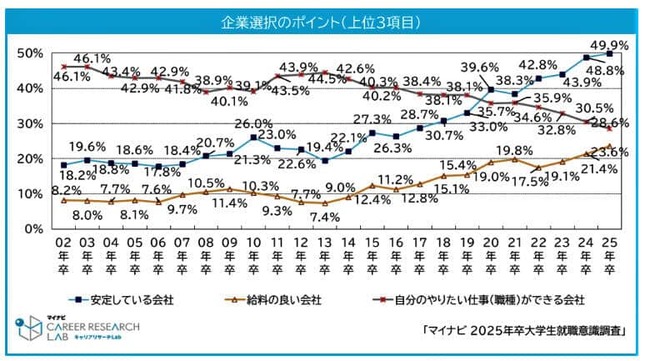 会社選びは「やりたい仕事ができる」より「安定している」が1位に