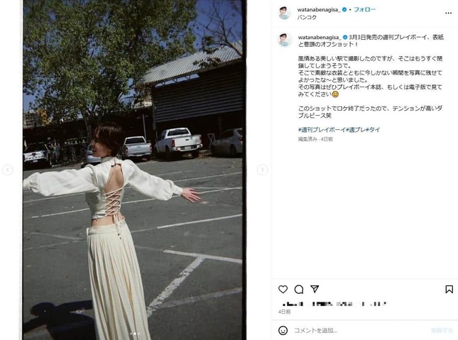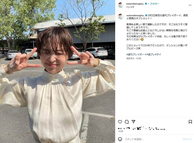 渡邊渚さんのインスタグラム(@ watanabenagisa_ )より