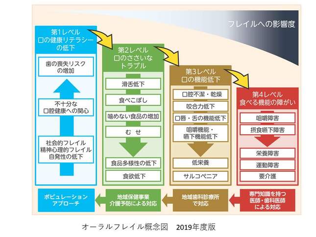 口は食べ物をかみ、のみ込む、言葉を発する、呼吸するといった機能を持つ。消化・自浄作用がある唾液を含め、口腔機能が機能低下の一歩手前にある状態を「オーラルフレイル」と呼ぶ。日本老年医学会と日本老年歯科医学会、日本サルコペニア・フレイル学会は2024年4月に発表した合同ステートメントで、オーラルフレイルについて「全身のフレイルや筋肉減弱(サルコペニア)、低栄養を引き起こす」と指摘したうえで、死亡リスクが高まると警鐘を鳴らした。