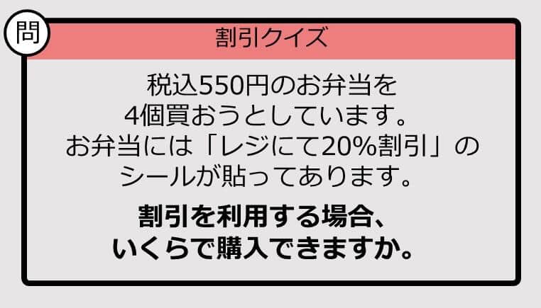 割引クイズクーポンやキャンペーンでお得に買い物ができる時、割引の計算がパッとできたら便利ですよね。毎日のスキマ時間に暗算力を鍛えておくといいかもしれません。まずはこの問題にチャレンジしてみましょう。税込550円のお弁当を4個買おうとしています。お弁当にはすべて「レジにて20%割引」のシールが貼ってあります。合計いくらで購入できますか。↓↓↓正解は......1760円その他の問題【割引の計算パッとできる?】1万2000円の「10%オフ」はいくら?《大人のための暗算ドリル》【割引の計算パッとできる?】250円×4の「15%オフ」はいくら?《大人のための暗算ドリル》【いきなり漢字テスト】「窯業」ってなんて読む?《難読漢字クイズ》【解けなかったら恥ずかしい?】16+10×8は?《計算クイズ》