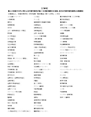 レポートには、人工知能やロボット等による代替可能性が「高い職業」と「低い職業」がそれぞれ100ずつリストになっていた。
