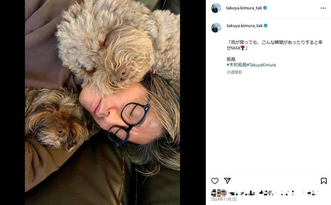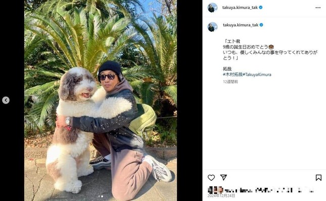 俳優の木村拓哉さんが2025年3月24日、愛犬とのツーショットを披露しながら、「7000歩」の散歩を終えたことをインスタグラムで報告した。