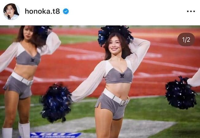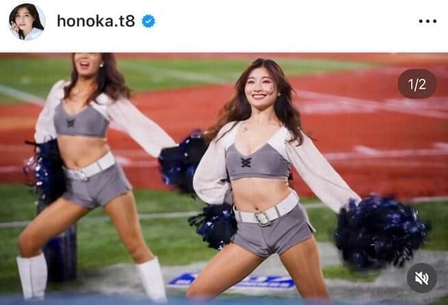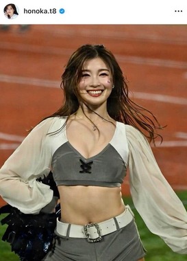インスタグラムにはチアリーダーとしてパフォーマンスをする動画を投稿。白とグレーのトップスと、グレーのミニ丈のパンツといったチアユニフォームを着用。チアリーダーとして、笑顔でキレキレのパフォーマンスを披露していた。