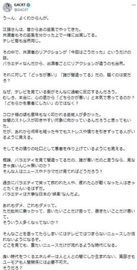 GACKT、江頭問題に言及 「バラエティは大事な日本の「娯楽」なんだよ」