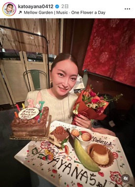 加藤さんは「本日、37歳になりました」「連日、沢山の友人に祝って頂き本当に幸せです」とつづり、夫・加藤茶さんとのツーショットなどを公開。また、「誠実に頑張って参ります いつも応援してくれる皆様も本当にありがとうございます」とコメントし、「#最高の誕生日」とハッシュタグを添えた。