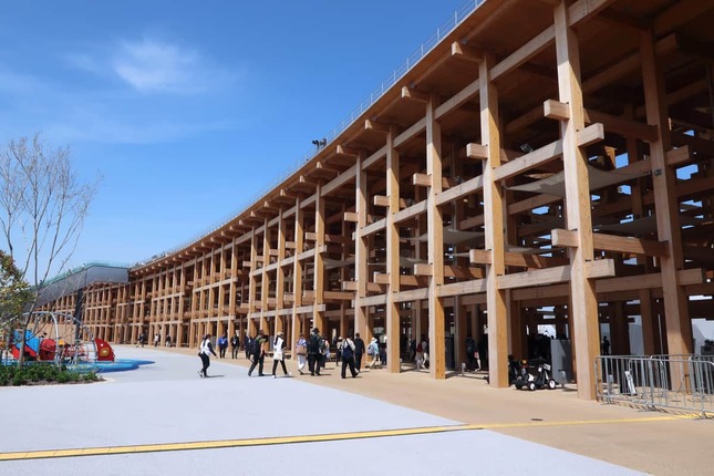 大屋根リングは会場のシンボルとなる木造建築物で、2層構造の屋上を歩くことができる。高さ12メートルの1層目には階段だけでなくエスカレーター、エレベーターが通じている。しかし、今回公開されたのは「エスカレーター」の写真だった。