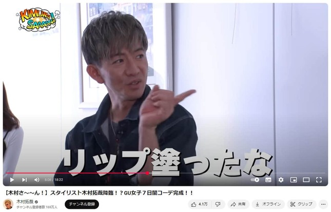 俳優の木村拓哉さんが自身のYouTubeチャンネルの動画で見せた、ゲストのタレント・野呂佳代さんがリップを塗り直したことに気付いた際の振る舞いに、「かっこよすぎるて」といった反響が寄せられている。