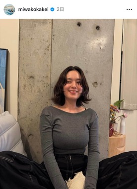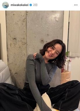インスタグラムに投稿された写真では、グレーのトップスに黒のワイドパンツといったラフな格好。うしろの壁にもたれかかり、笑顔を見せていた。