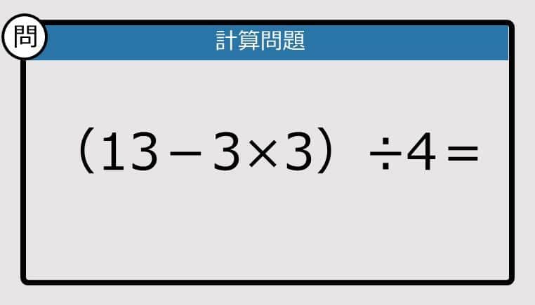 【解けなかったら恥ずかしい?】(13-3×3)÷4は?《計算クイズ》