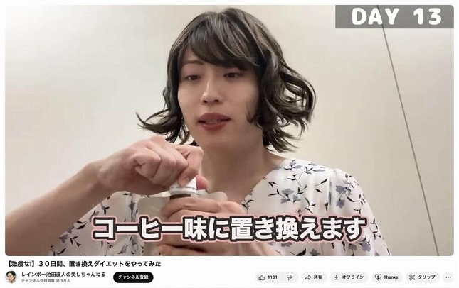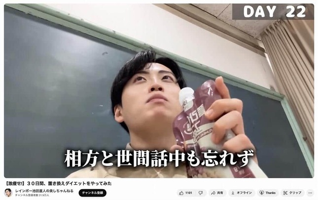 そんな美意識の高い池田さんが動画内で、韓国で流行している、毎日1食をプロテインに置き換えるダイエットに挑戦した。