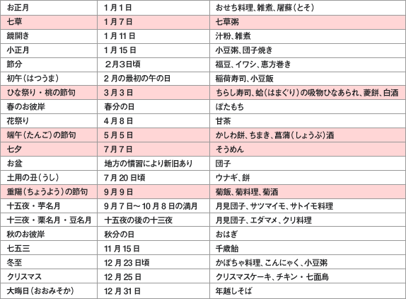 第1章でご覧いただいた「行事食」一覧にも五節句が入っていましたね。