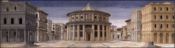 200年ほど続いたゴシック美術では、モザイクや黄金背景を使い、重要なものを中心に大きく描いた作品が多く見られました。そこに遠近法や、説得力のある表情が生まれ、徐々にルネサンスへと移行します。ここで一つの視点から物を正確に捉え、遠近感を科学的に再現する透視図法が誕生。ルネサンス期の芸術家は、数学的な知識や、高い描写力を求められるようになるのです。