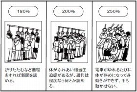 ・250%=電車がゆれるたび体が斜めになって身動きができず手も動かせない