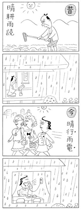 皮肉の中にも、たいがい「愛」があります。「共働き」を語るとき、「電車の中に冷蔵庫があればいいのに」と女性の立場で考えます。「こどもの日」に、今は亡き老母が、仏壇からすうーっと出てきて、うたた寝する年老いた息子にふとんをかけます。こんな懐の深い目配りもサンペイさんならではでしょう。