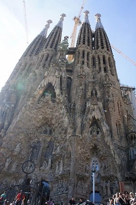 サグラダ・ファミリアといえば、建物外側のファザード(正面と側面のこと)があまりにも有名。キリストの苦しみを表現した受難のファザード、キリストの誕生から幼少期までを彫刻で表現した生誕のファザードは、訪れた観光客たちを出迎え、圧巻する。