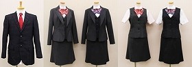 男性用は黒字のジャケットと灰色のパンツで、これまでに比べて軽量で汗を吸いやすい生地を使った。ネクタイはコーポレートカラーの赤をメインに、シンボルマークを織り出した。