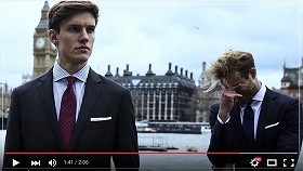 5日間の長旅を終え、最後はブラックキャブでロンドン入りしたモデルは、ヘアメイクもせずそのまま撮影現場へ。髪はボサボサ、ヒゲも伸びて、どう見ても寝不足の顔。隣には、ばっちり決めた他のモデルが立っているので、恥ずかしいのか、その顔を手で覆いながらカメラに収められている。そして肝心のスーツはというと、出発時と変わらず決まっている様子。MJ Baleのスーツの品質を立証したいという目的は、無事達成できたようだ。