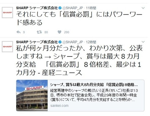 シャープ公式ツイッターの主は、何か月分もらえるのだろうか。気になる。