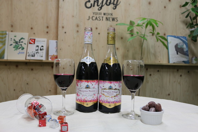 通常、ワインは翌年の春ごろから出荷が始まるが、ボージョレ・ヌーヴォーは収穫からわずか6週間で瓶詰めされる。ブドウの収穫後、最も早く出荷されるワインのひとつで、いわば「旬の味」。J‐CASTニュース編集部にも届き、さっそく封を切った。