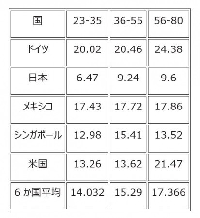 年代ごとにみると、その傾向は国によって異なるようだが、日本と米国の若い世代は休暇が取りにくいことがわかる。