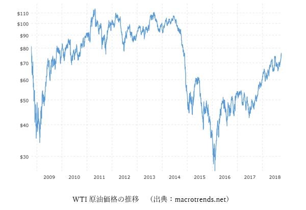 2014年に1バレル100ドルを超えていたWTI原油(米テキサス州西部などで生産される原油。ニューヨークマーカンタイル取引所に上場される、国際的な原油価格の指標の一つ)は急落。16年1月に大底の27ドルを付け、その後上昇して現在75ドル前後で取引されている。原油は投機的な性格を持つため価格変動が激しく、日本経済は原油価格の変動に振り回されてきたといっても過言ではない。