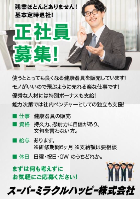 ホントはブラックな「スーパーミラクルハッピー」の正社員募集広告