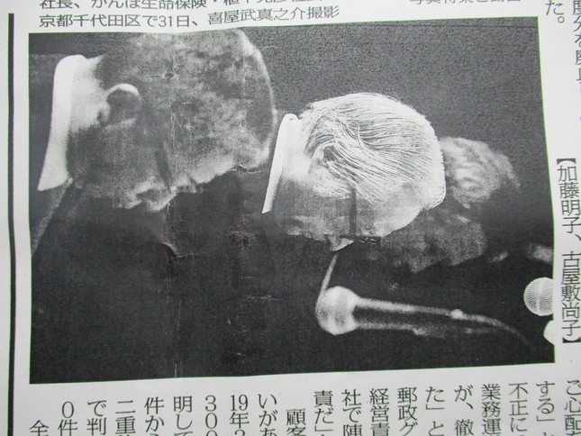 冒頭、グループのトップである日本郵政の長門正貢社長が「ご迷惑、ご心配をおかけし、お客様に深くおわび申し上げます」と謝罪した後、3人の社長がいっせいに深々と、そして長々と頭を下げた。